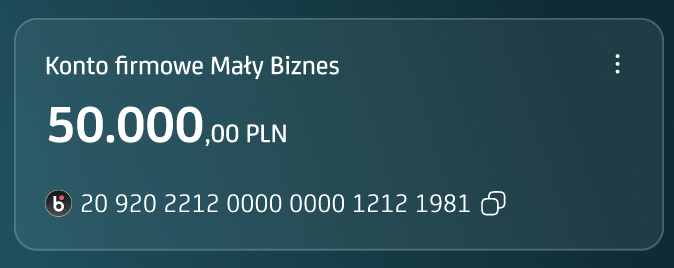 Numer IBAN Twojego konta głównego powinien być widoczny na stronie głównej Twojego pulpitu nawigacyjnego: