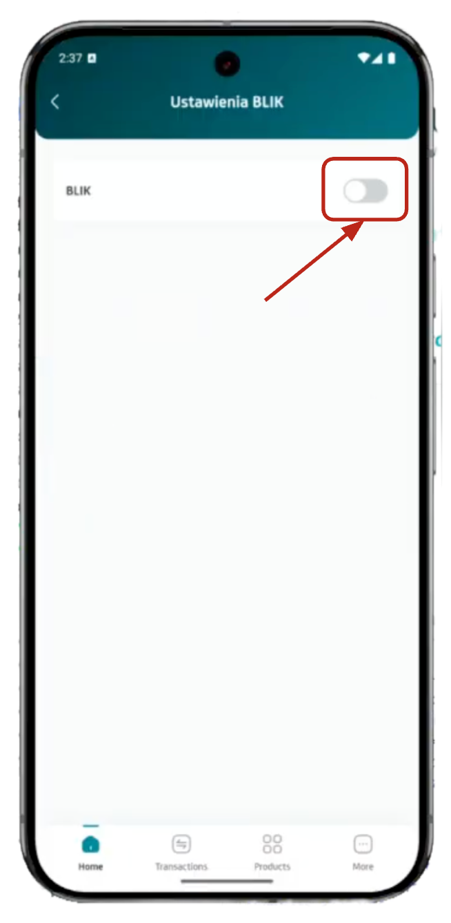 1. Aby aktywować usługi BLIK T6, kliknij ikonę „BLIK” na ekranie głównym w Twojej aplikacji UniCredit.